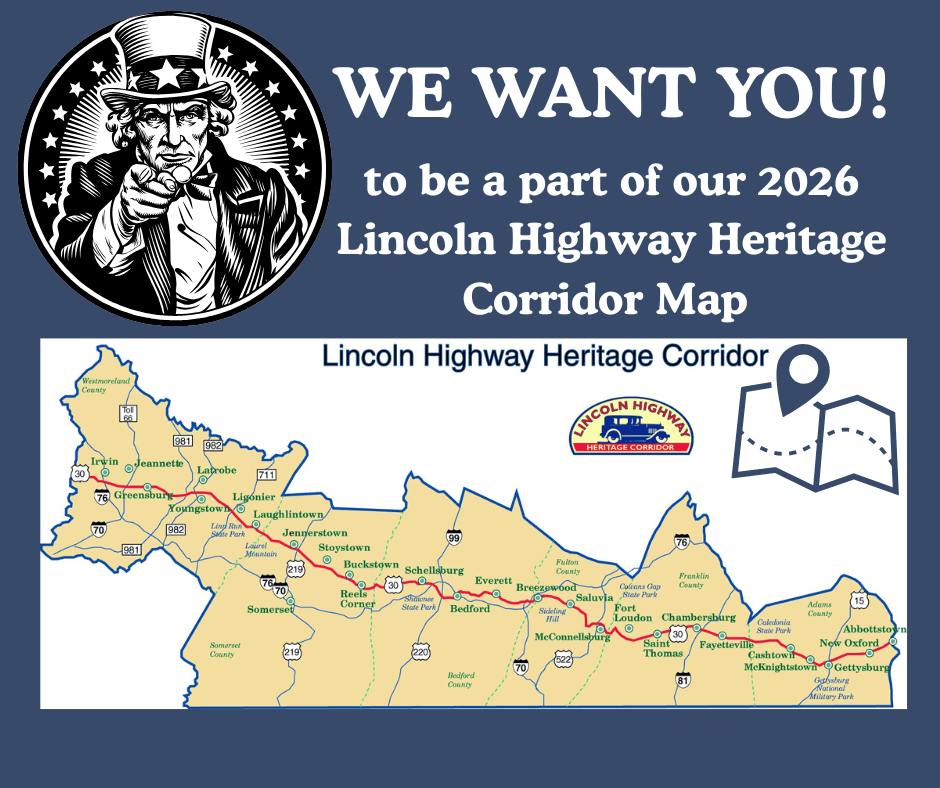 We Want You to be a part of our 2026 Lincoln Highway Heritage Corridor Map