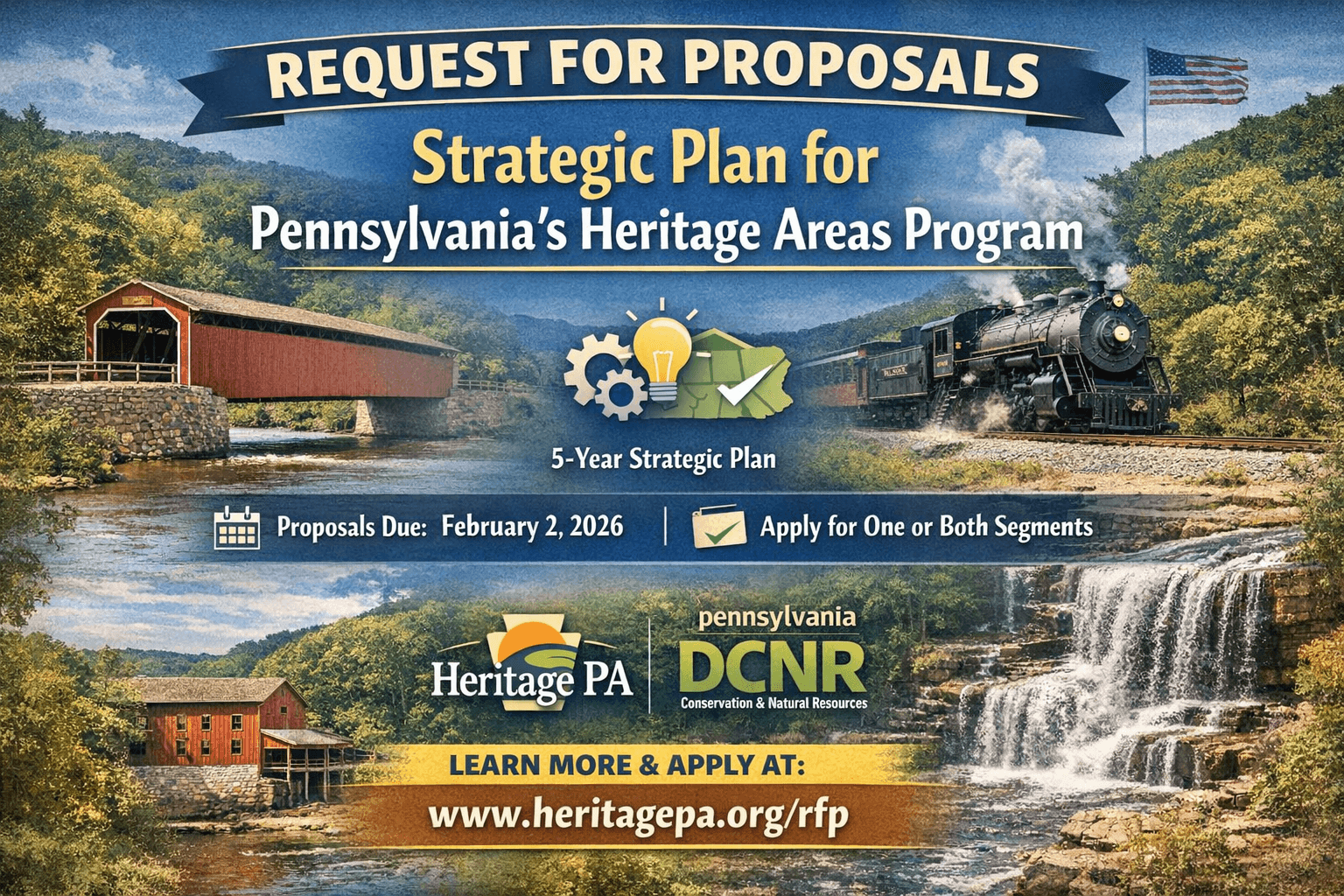 Heritage PA, on behalf of the Pennsylvania Department of Conservation & Natural Resources (DCNR), is pleased to announce a Request for Proposals (RFP) for the development of a 5-Year Strategic Plan and updated program guidance for the Pennsylvania Heritage Areas Program.